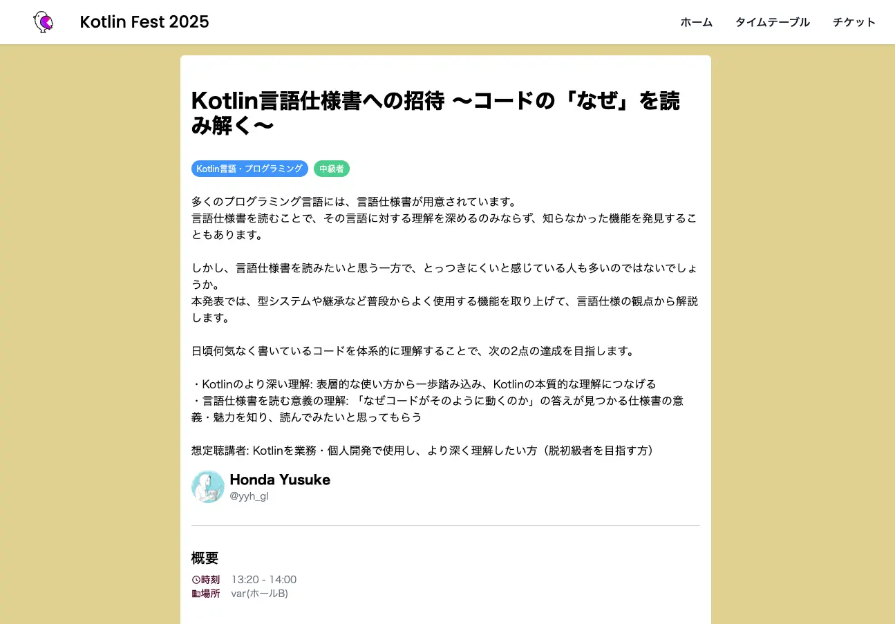 『Kotlin言語仕様書への招待 〜コードの「なぜ」を読み解く〜 』 というタイトルで話しました。